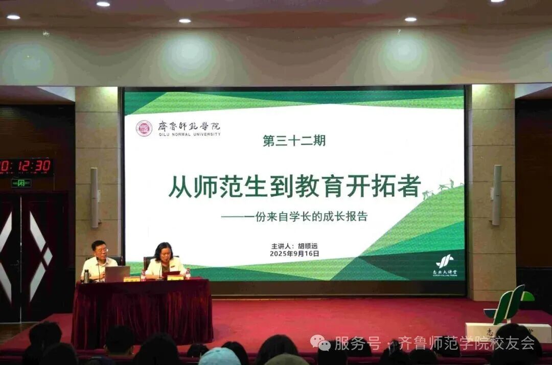 胡顺远以“个人成长与生涯规划”为核心,从创业之路、人生感悟和未来建议三个维度,用诙谐生动的语言回忆了在母校的求学时光,深情诉说了母校对个人价值观与能力培养的深刻影响。他结合自身创办兴华教育的实践经历,讲述了自己从一名普通师范生,逐步成长为拥有 17个独立办学单位、万名师生规模的教育集团领军人的奋斗历程,生动展现了面对挫折时的坚持与突破。分享情真意切、高屋建瓴,既有个人成长的生动故事,也有对教育行业未来发展的独到见解,为同学们提供了宝贵的实践参考与思想启发。
