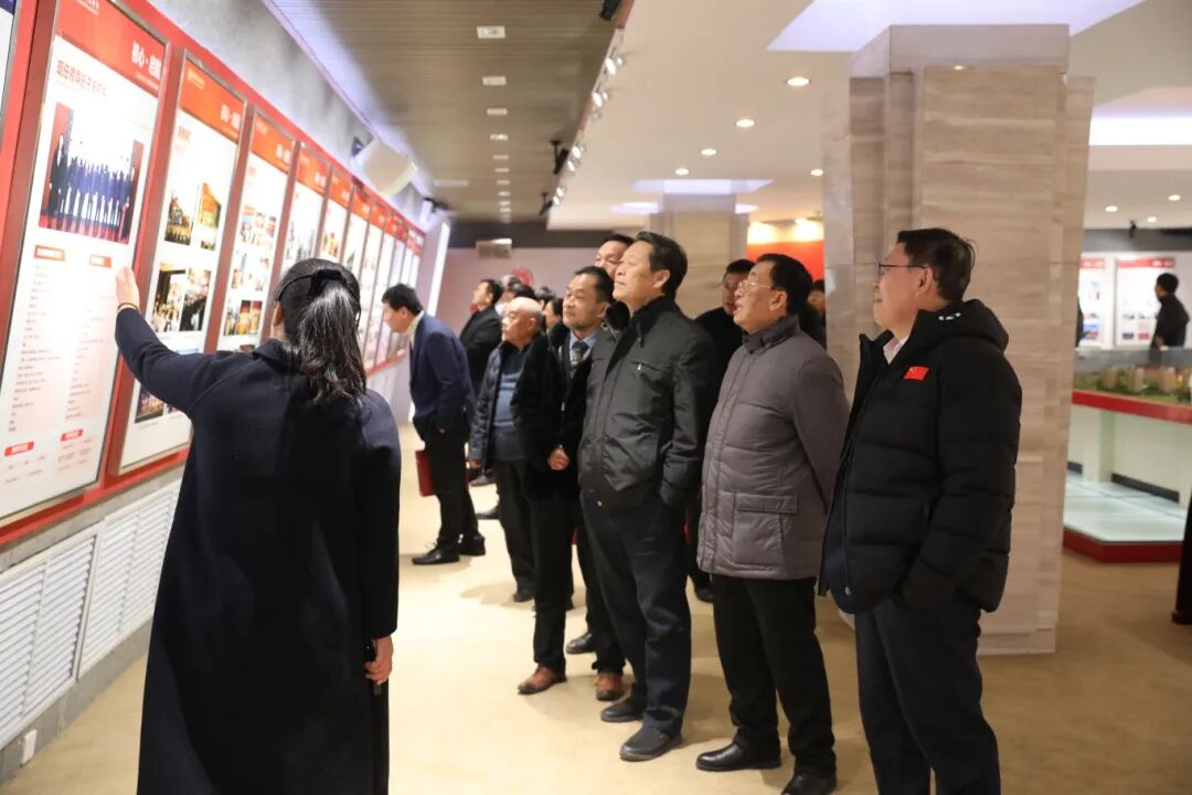 校友和学校领导参观学校办学成就展。