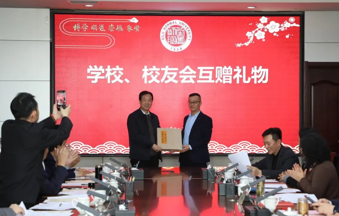 孙洪兆代表学校向济南校友会赠送纪念礼物。